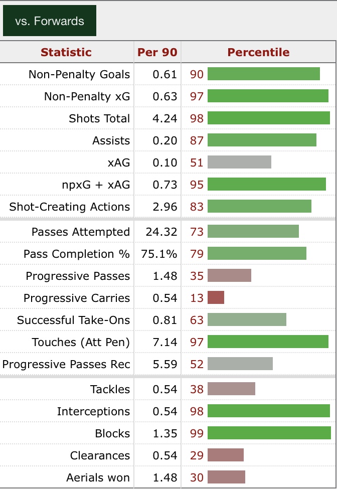 Danilo had a pretty underrated 2022-23 season, with him being the backup to Santiago Gimenez and Alireza Jahanbakhsh. Danilo had exceptional underlying stats for a striker. He was in the 98th percentile for total shots, in the 97th percentile for non-penalty xG and in the 97th percentile for touches in the opposition box. Danilo is also a very hard worker off the ball with him being in the 99th percentile for blocks and the 98th percentile for interceptions.